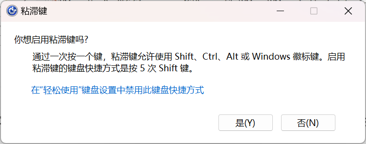 适用于大多数Windows版本,连续按下5次shift就会弹出这个