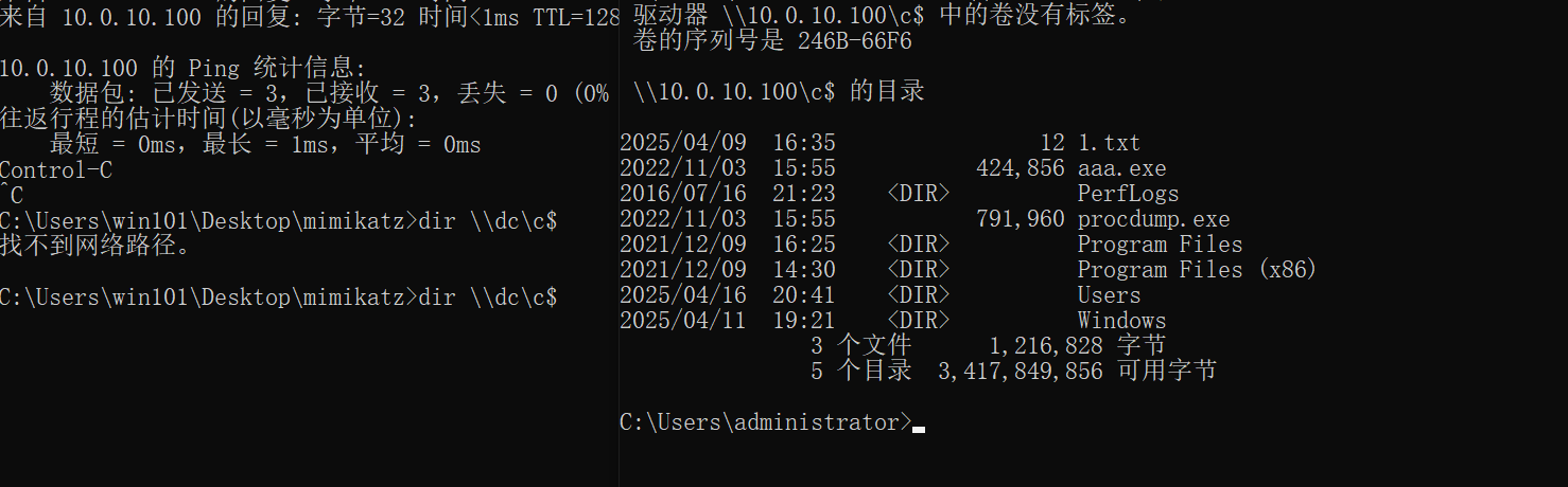 新开一个窗口:执行dir \dc\c$ 看是否能够正常看到