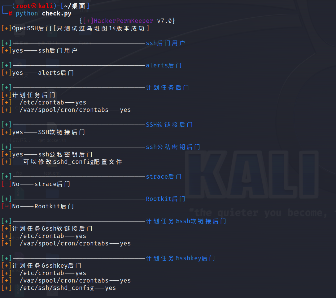 查看可能存在权限维持的情况在回到主机运行对应的模块,如这里我测试SSH软链接后门