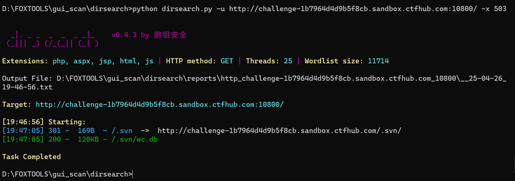 使用dirsearch扫描目录发现存在SVN源码泄露