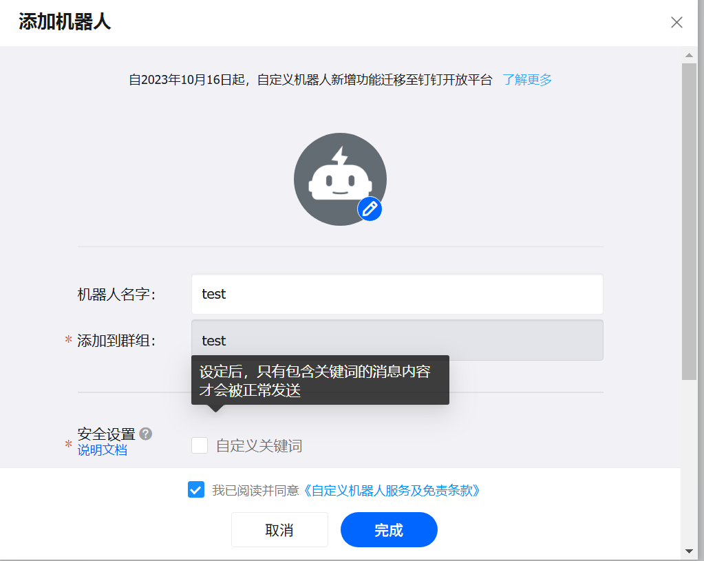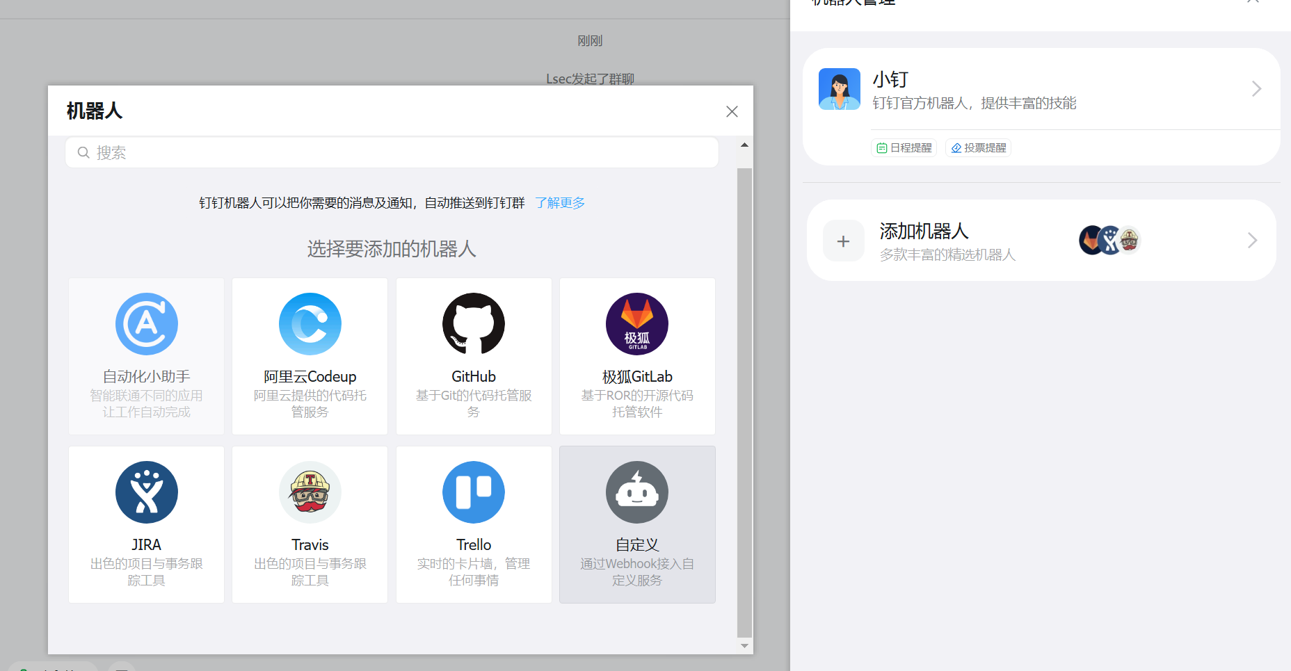选择自定义机器人