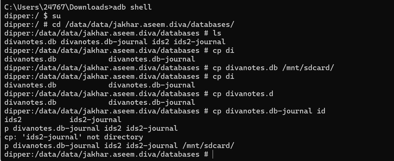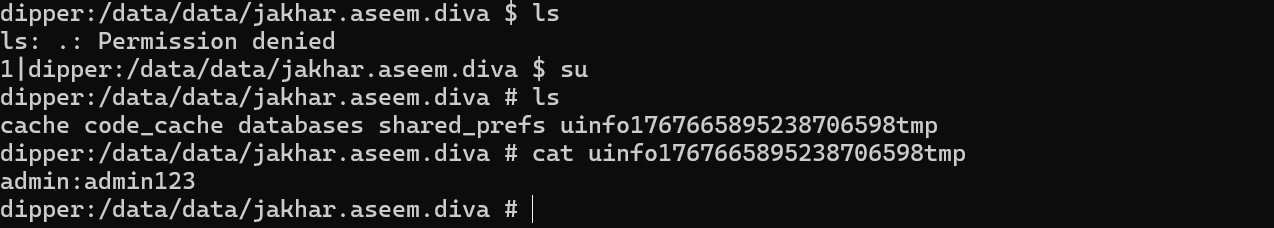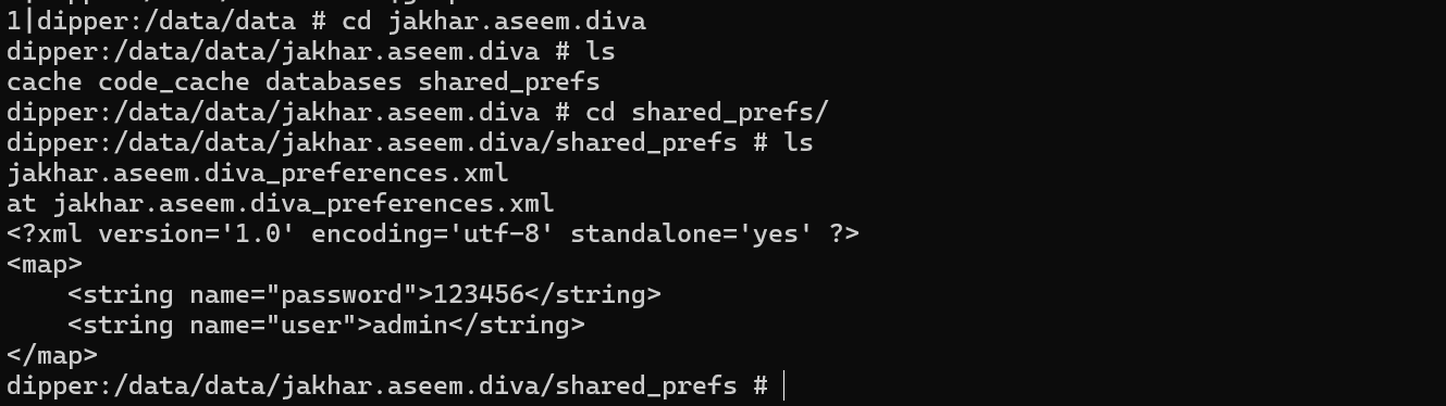2.切换到/data/data/应用包名下,查看其中的sharedprefs目录下的xml文件,没有发现敏感信息明文存储在xml文件下