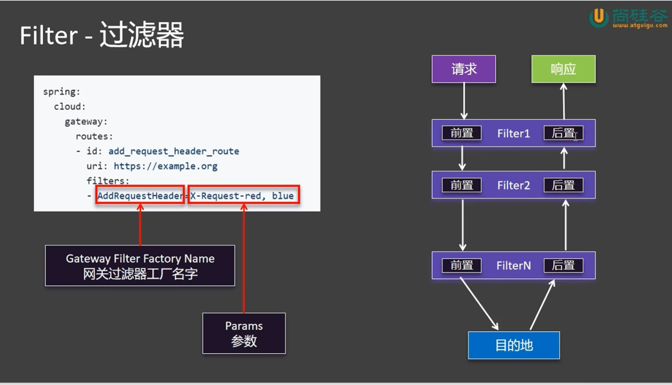 **添加请求头响应头Filter:**AddRequestHeader/AddResponseHeader