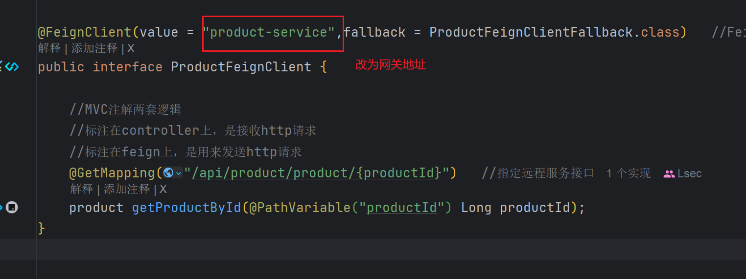默认是不经过网关的,但是也可以经过网关,只需要将远程调用的地址改为网关地址,让网关来发送请求即可