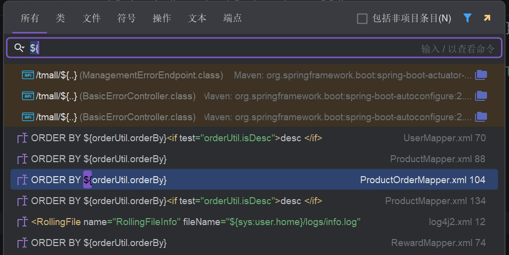 1.判断结构,网站使用SpringBoot+mybatis,经典MVC架构,对于Mybatis网站直接搜索关键词${