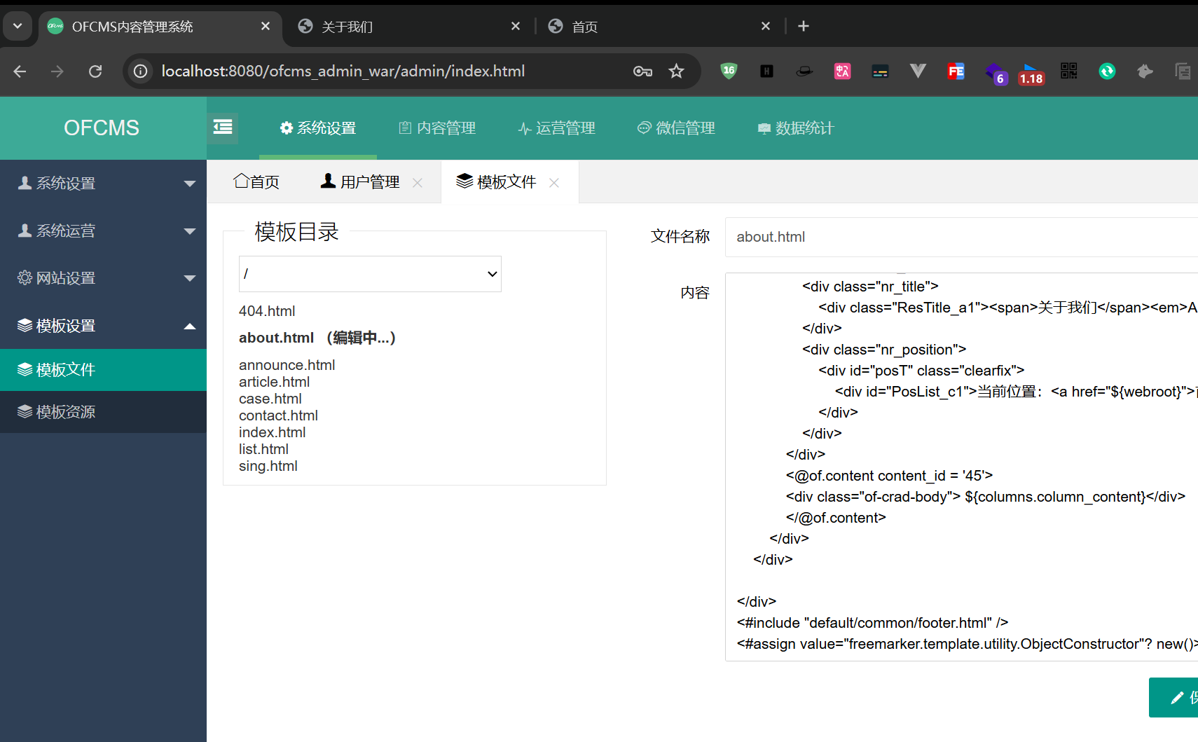 登录管理员后台,发现存在模板管理功能点
