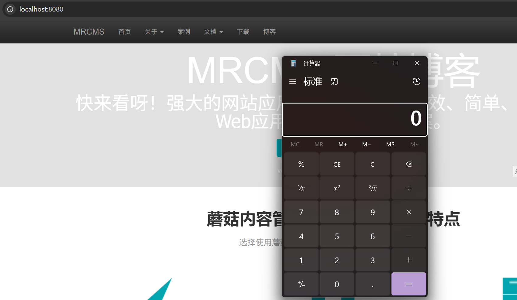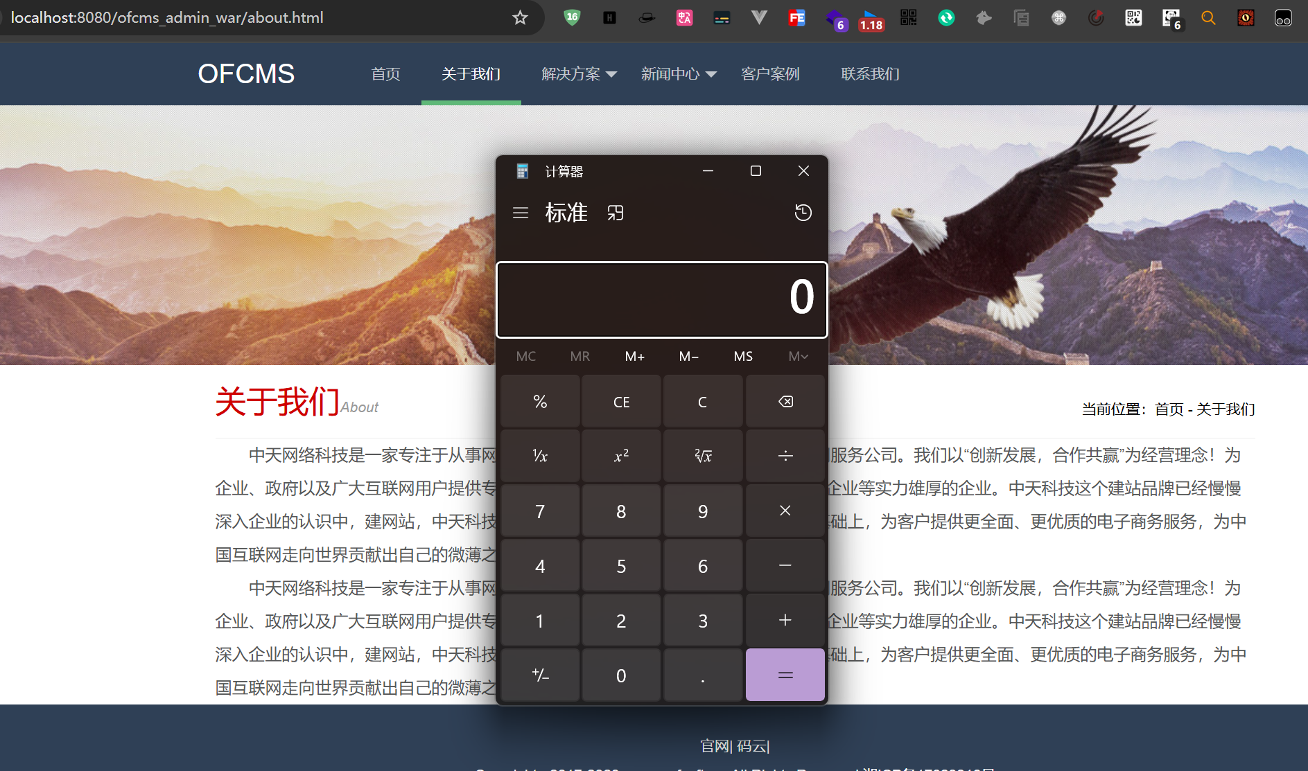 访问about.html页面成功弹出计算器