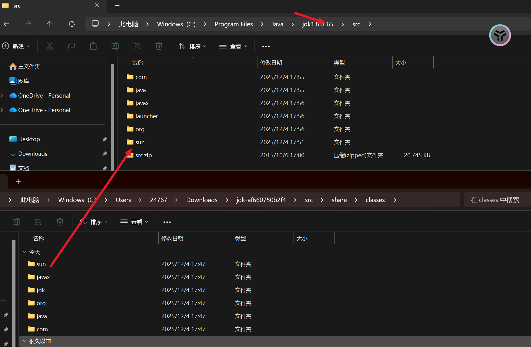 解压JDK8u65的src压缩包,将sun包放到src目录下