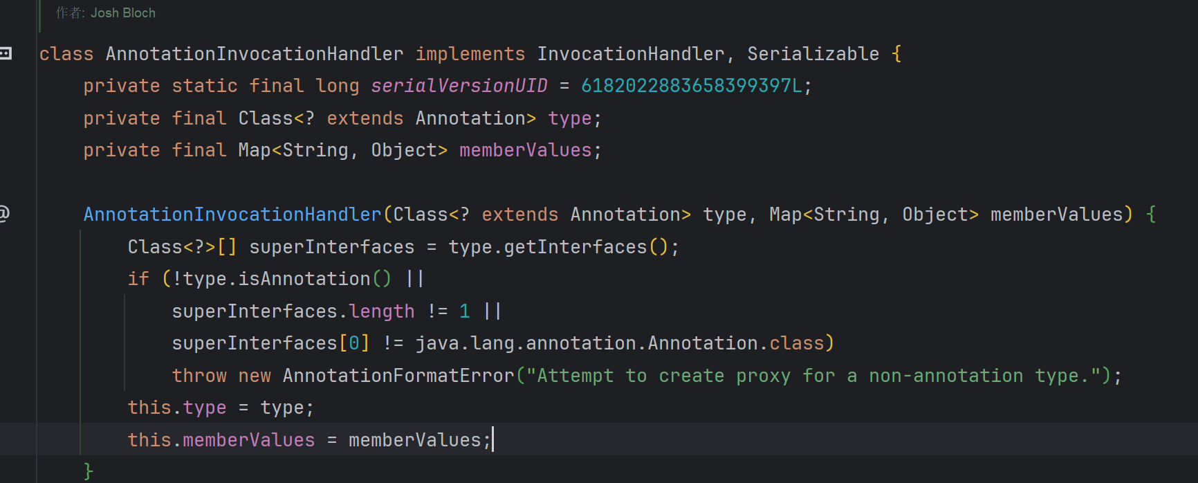 AnnotationInvocationHandler 实际是注解的动态代理。