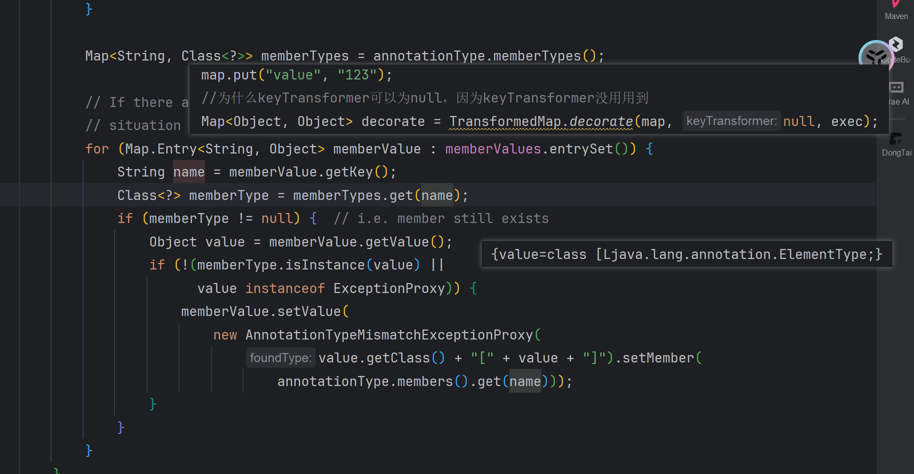 所以此时我们就知道了,如果valueTransformer =InvokerTransformer并进行以下利用