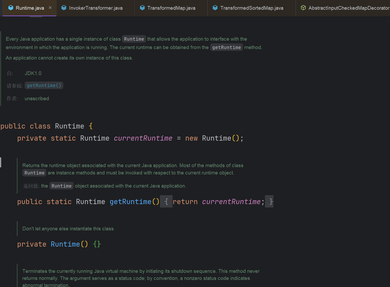Runtime runtime = (Runtime) new InvokerTransformer("invoke",