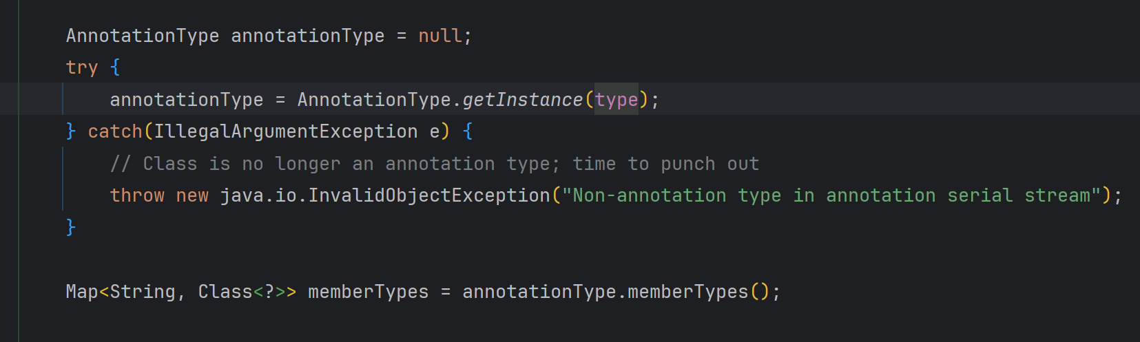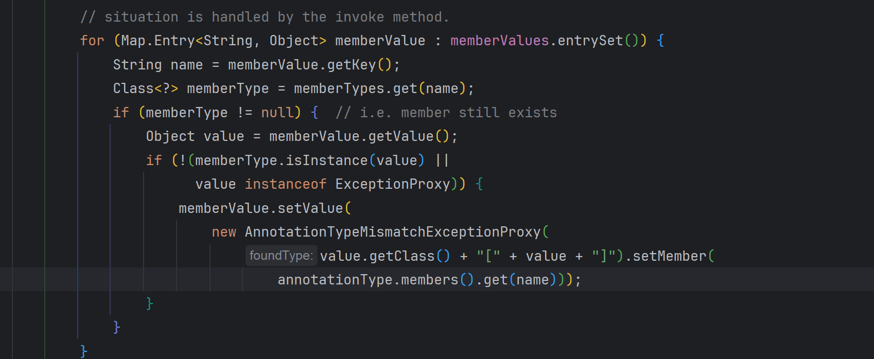 - entry.setValue()我们要传入Runtime对象,但是这个AnnotationInvocationHandler类的setValue方法传入的是一个AnnotationTypeMismatchExceptionProxy这个对象,这里我们好像控制不了