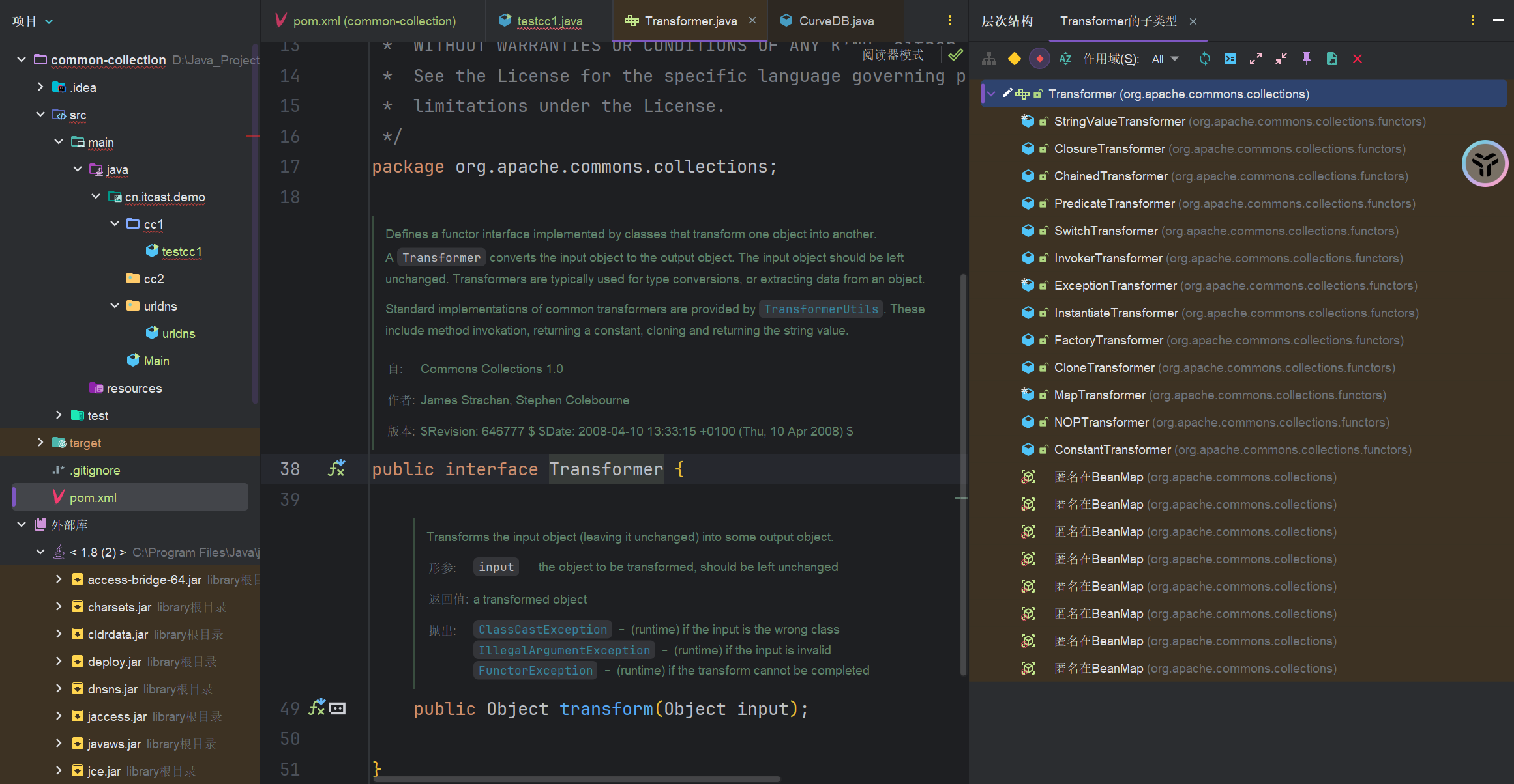 IDEA快捷键 Ctrl+H快速查看哪些类实现了Transformer接口