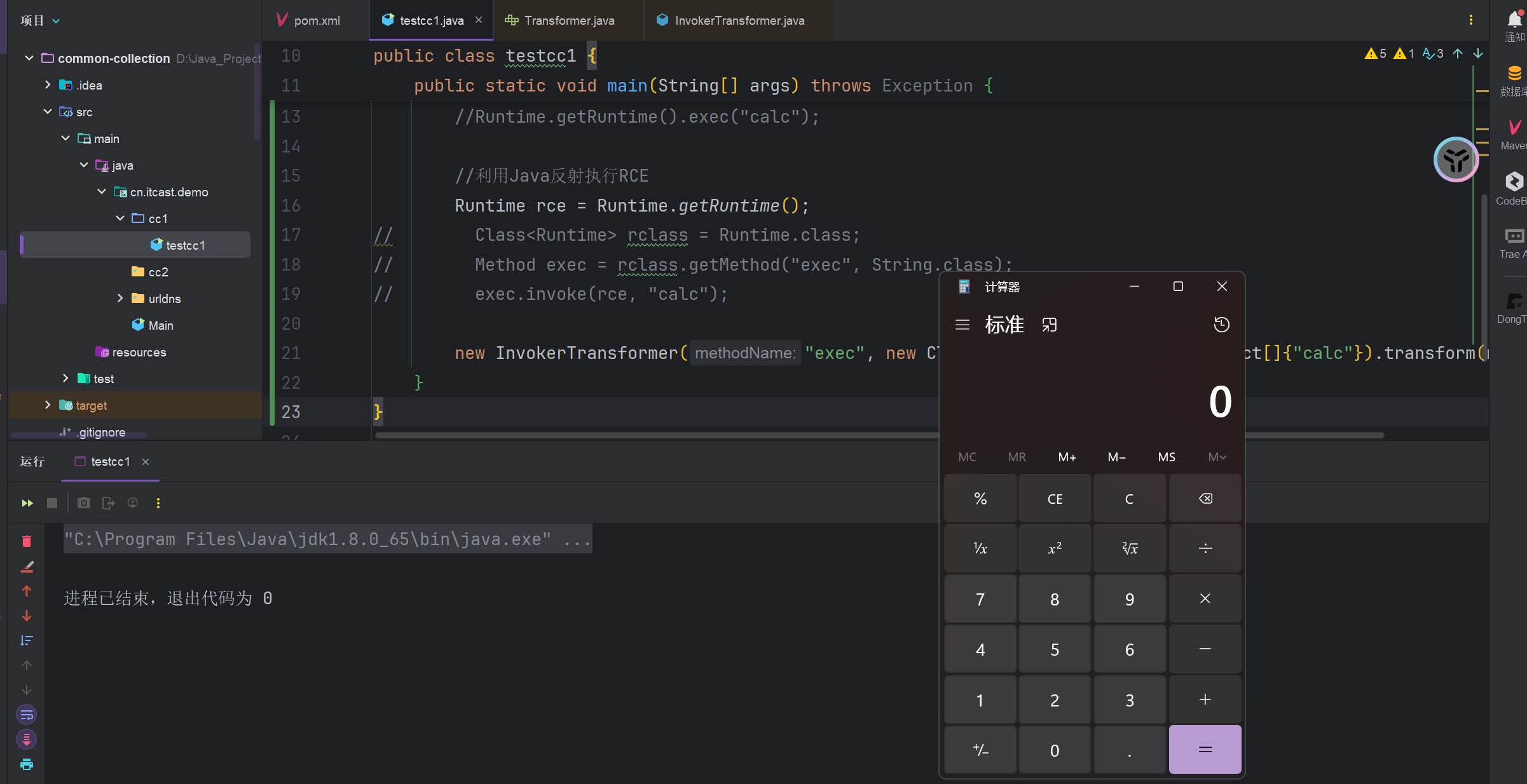 new InvokerTransformer("exec", new Class[]{String.class}, new Object[]{"calc"}).transform(rce);