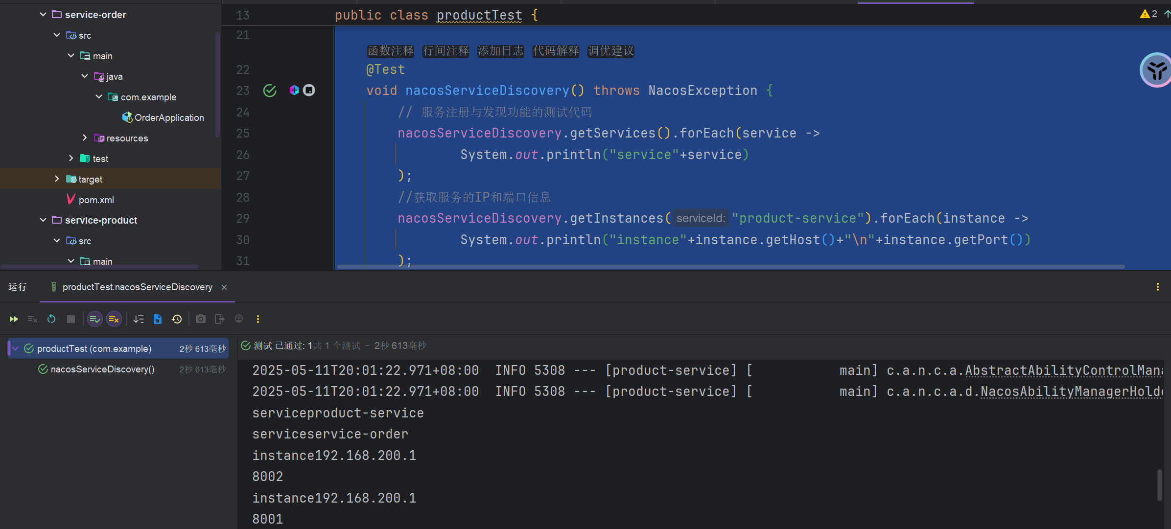 使用nacosServiceDiscovery进行服务发现测试