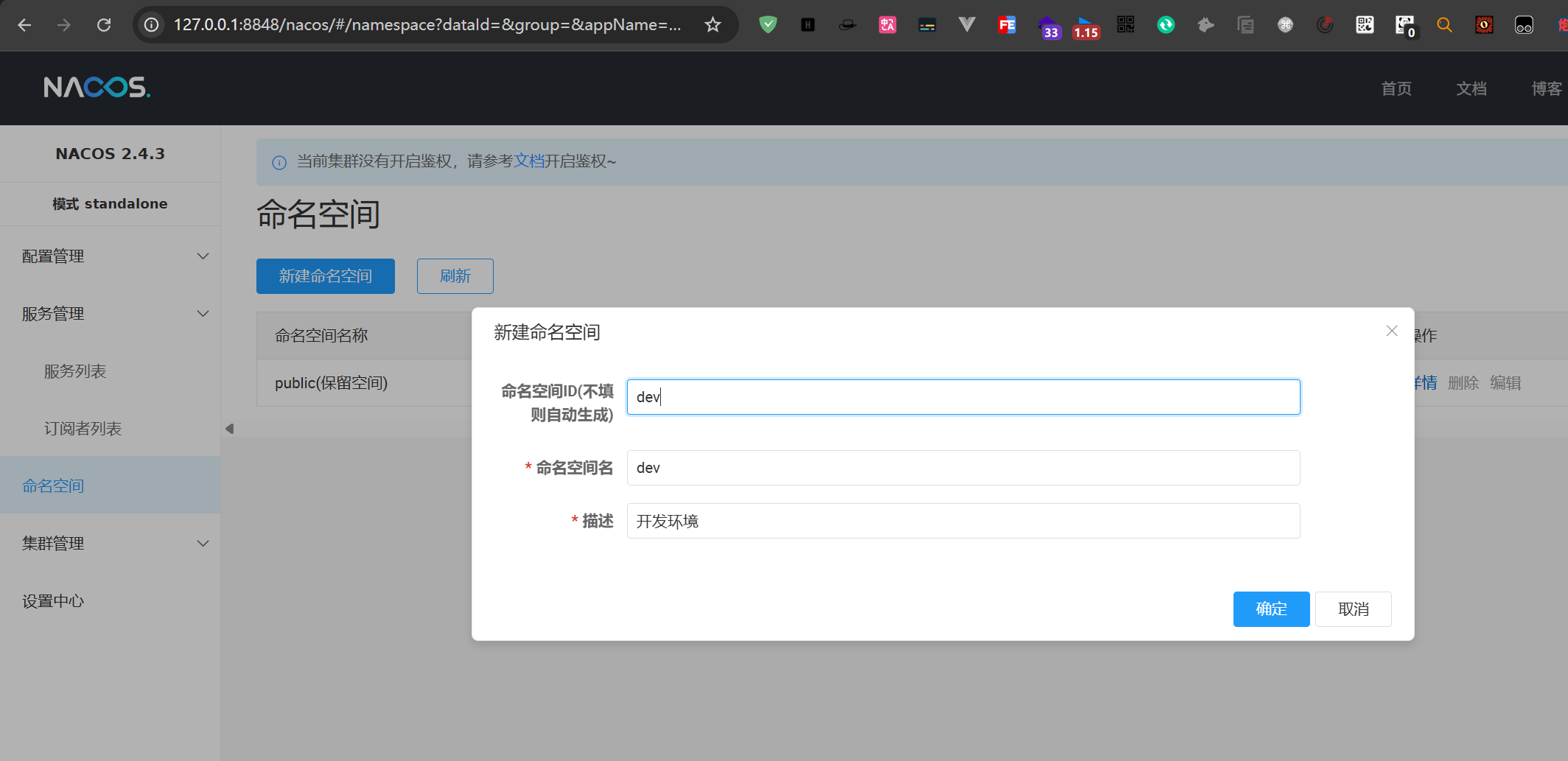 1.在Nacos的命名空间中新建名称空间