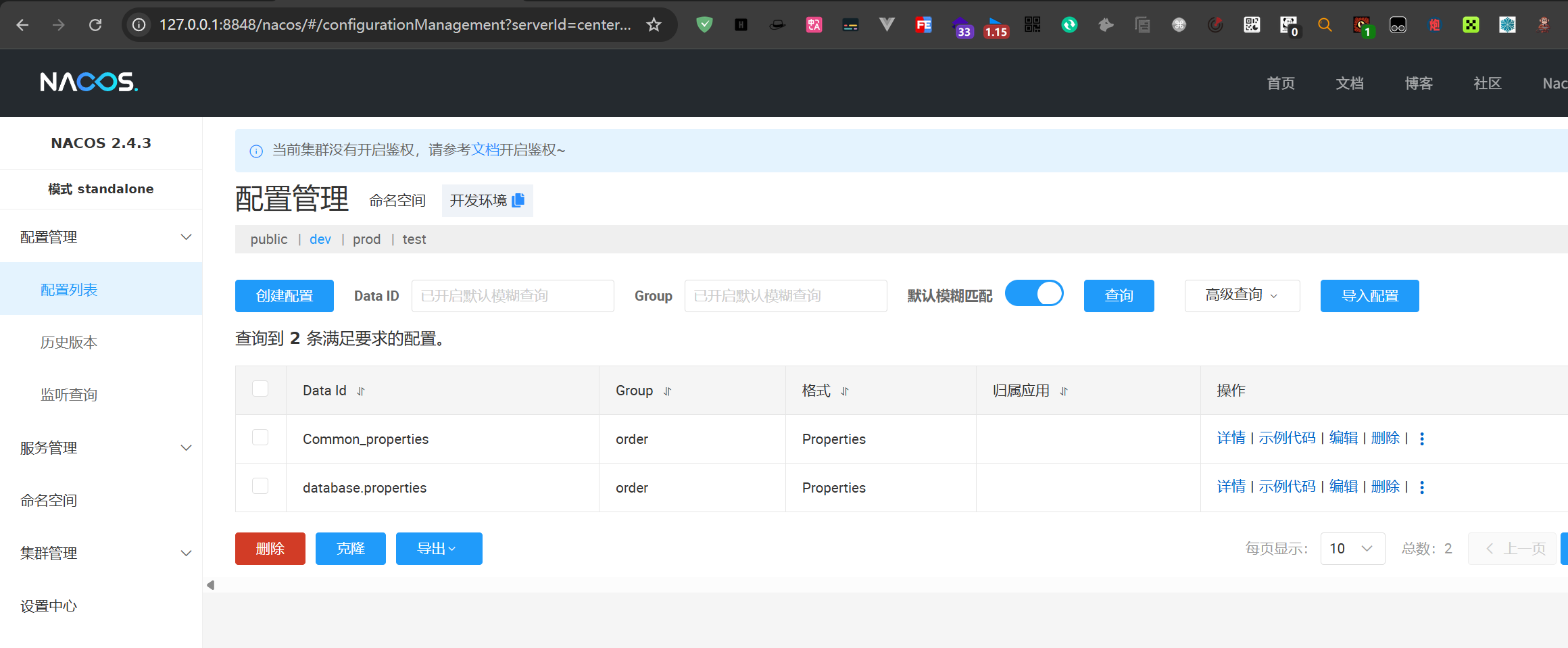 2.创建好开发测试生产环境的命名空间后,在配置管理者找到对应空间,新增配置
