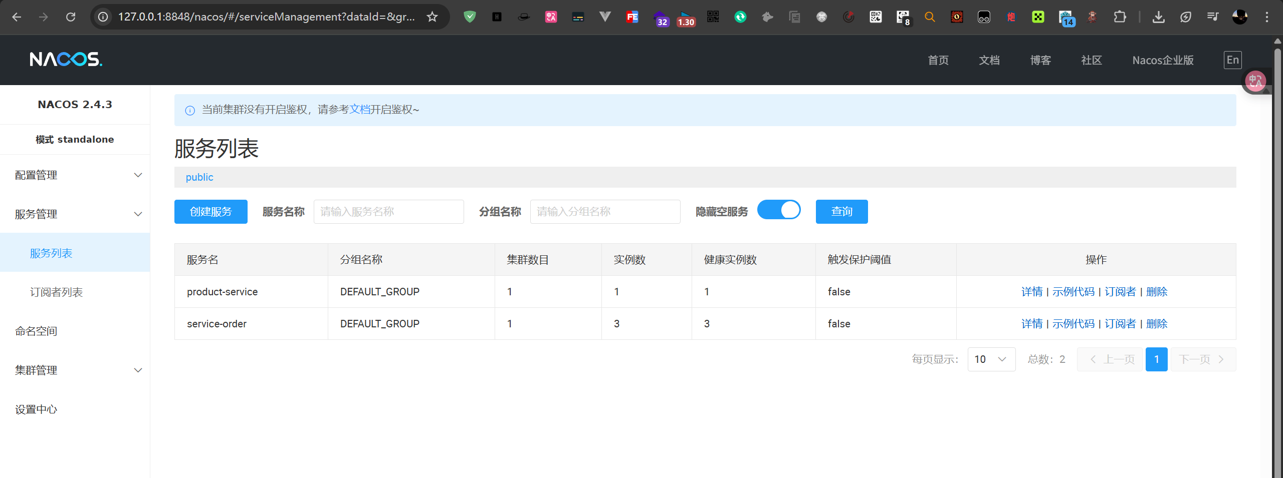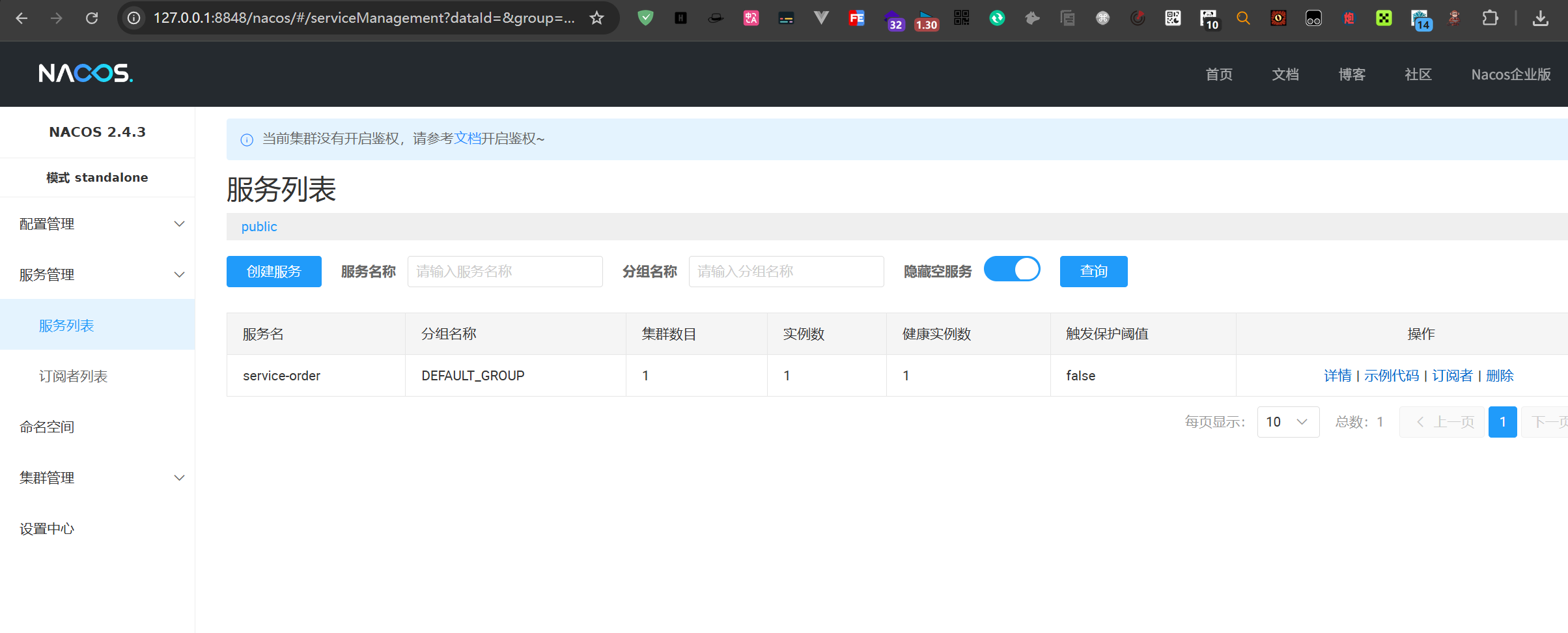 此时访问本地nacos服务器,发现nacos中存在service-order即注册成功