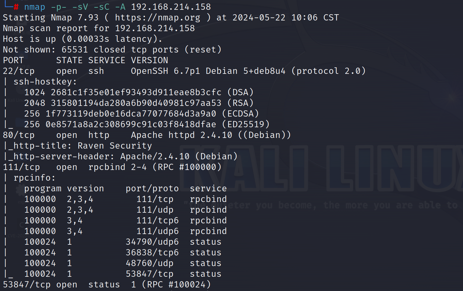 nmap -p- -sV -sC -A 192.168.214.158 对目标主机进行端口探测