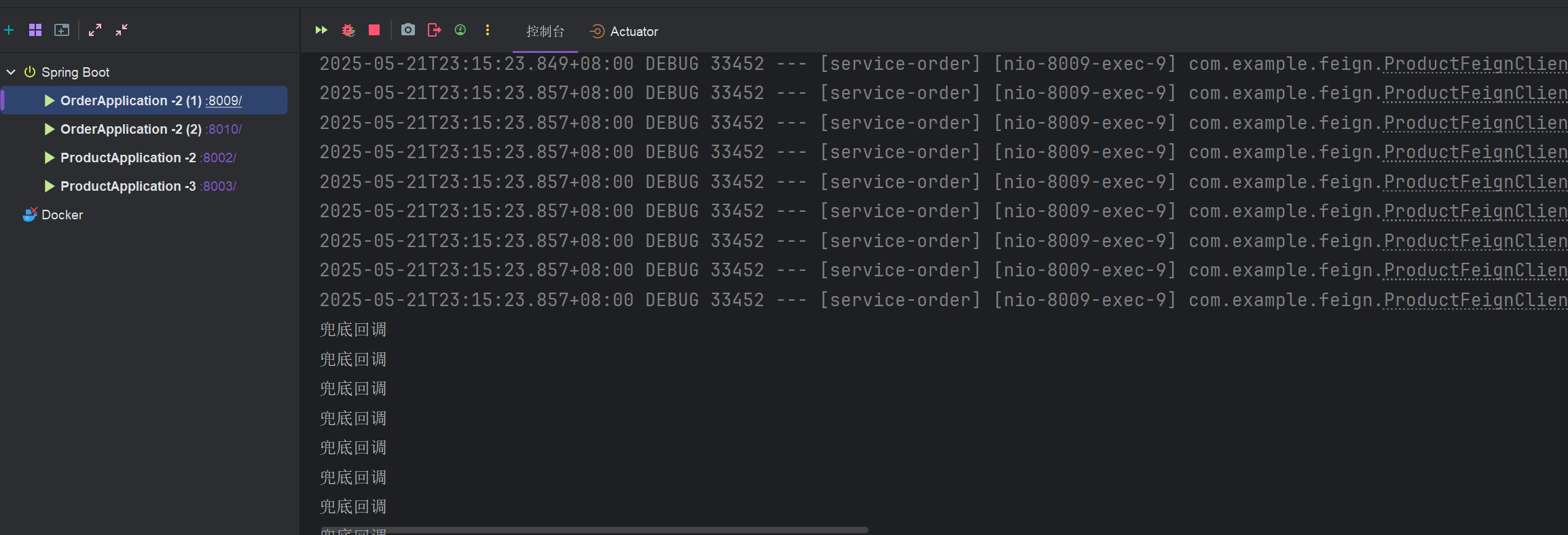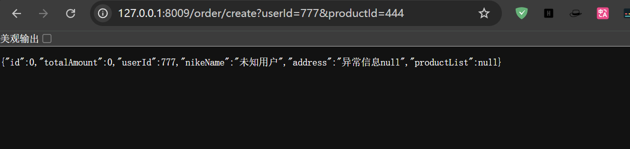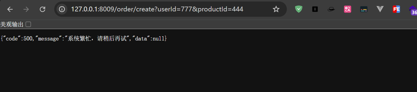 当请求过快时会看到页面返回OpenFeign兜底回调数据,原因是我们之前在OpenFeign接口上写过兜底回调fallback,如果请求失败并且项目中有兜底数据,那么就会显示兜底数据,如果没有写兜底回调,那么就会往上抛,知道SpringBoot来进行处理
