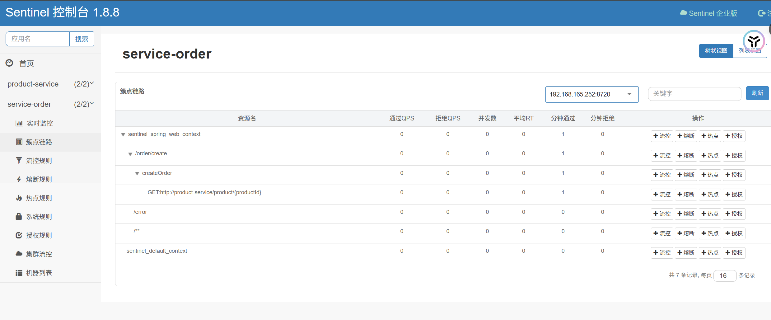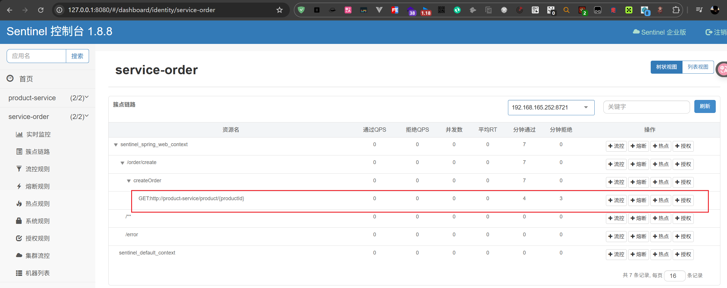 此时如果我们请求这个路由,Sentinel就会接收到这个请求,根据我们在Sentinel上定义的规则对请求进行拦截或放行