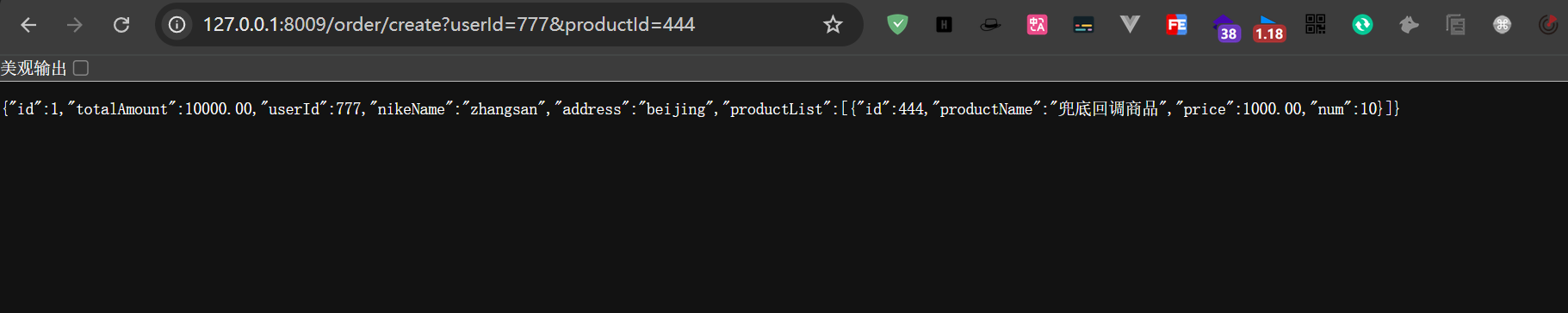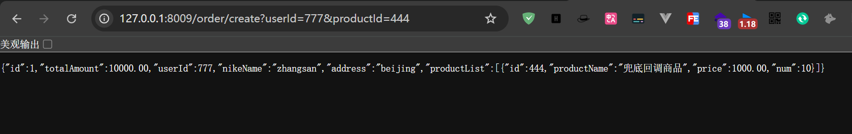 //当请求符合Sentinel的要求时,直接走CreateOrder方法并返回真实数据