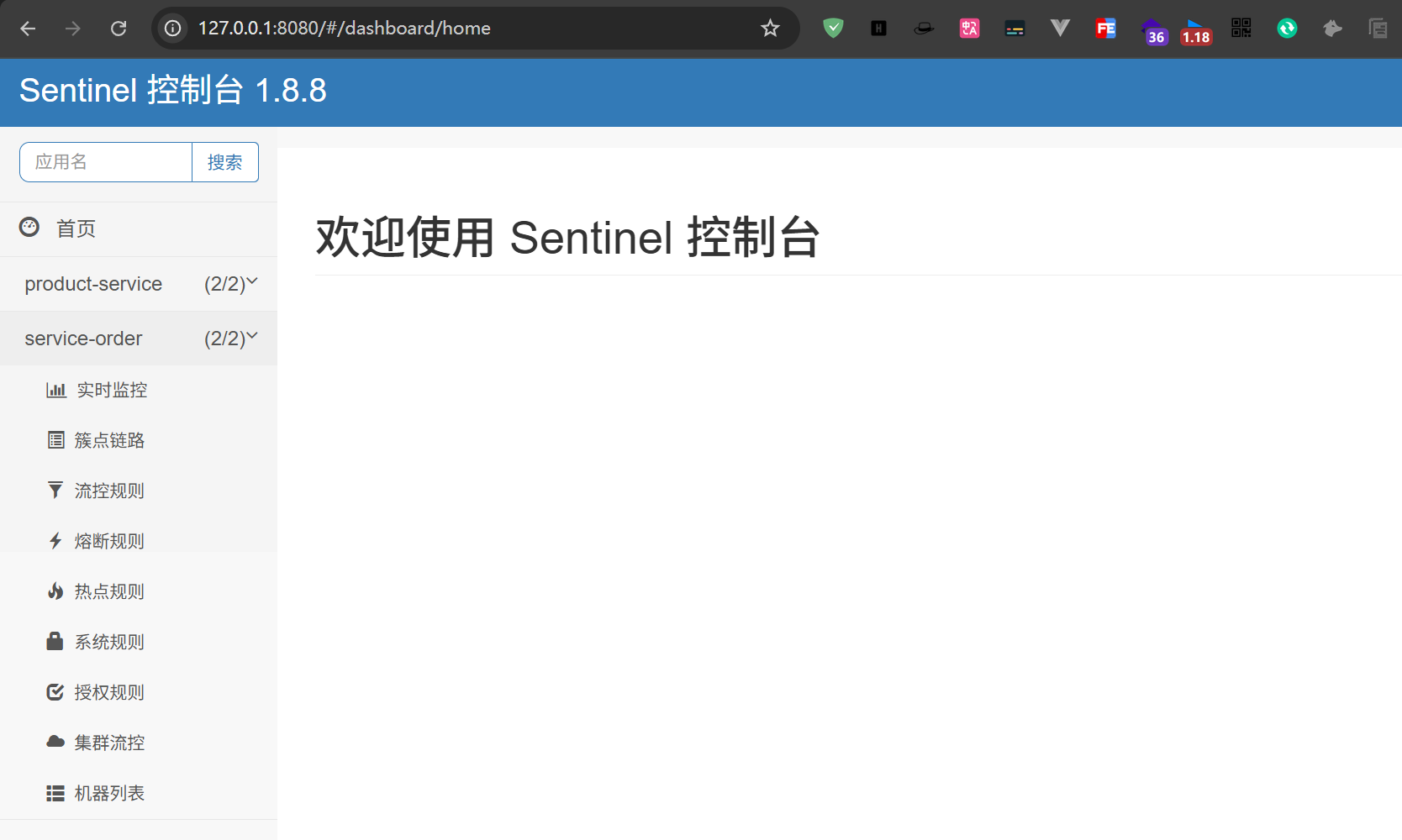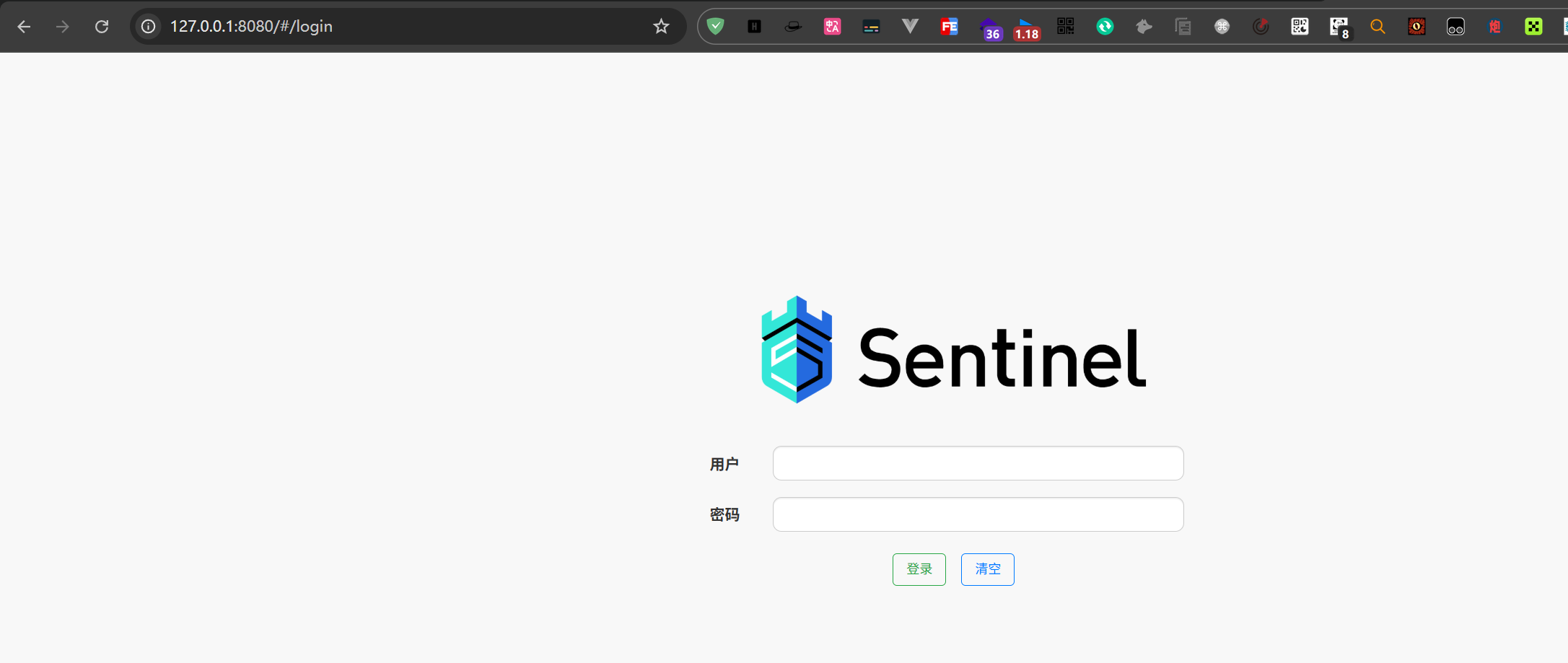 启动后访问127.0.0.1:8080端口,默认账户密码为sentinel:sentinel