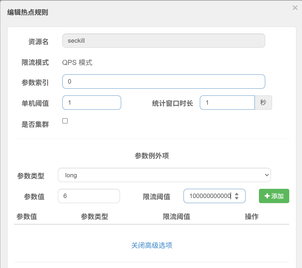 高级选项中参数值为6表示userId为6的用户不限流
