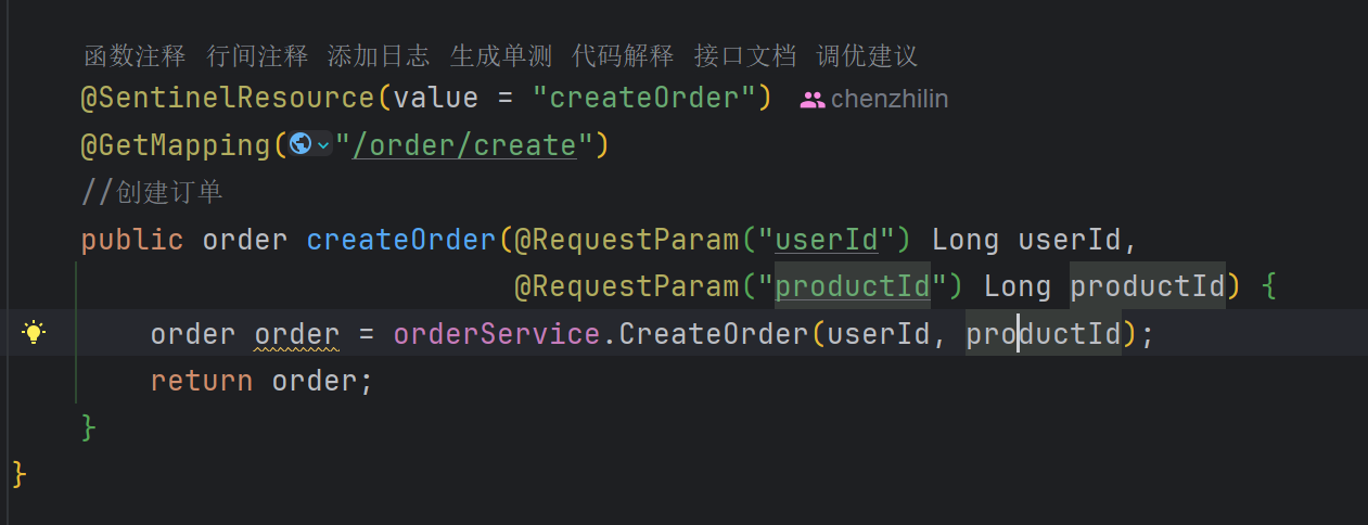 @SentinelResource(value = "createOrder", blockHandler = "CreateOrderBlockHandler")